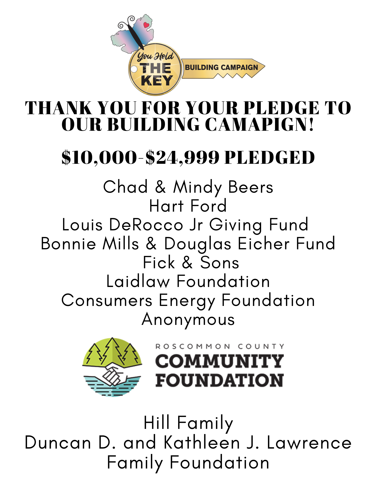 “Child abuse and neglect is a significant problem in big cities and small. The communities in the Roscommon area are so fortunate to have the high quality Children’s Assessment Center available to them. I grew up near Roscommon, went to school in what is now the CRAF Center back when these services did not exist, but were certainly needed. We spend our summers at Higgins Lake and former high school friends informed us of the effectiveness of the Assessment Center and asked us to help with the Building Campaign. We were happy to help and hope you will too!”