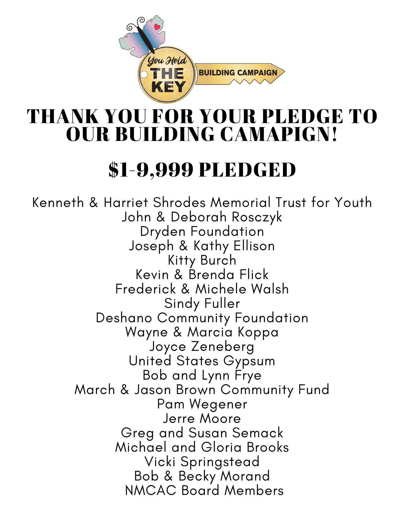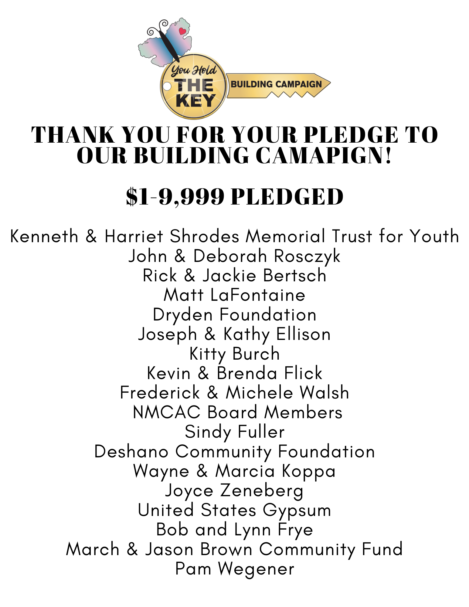 Thanks to the generosity of our community, we’ve raised $1,096,272 of our $1.2 million goal for Phase 1 of our Building Campaign. This first phase is critical to expanding our space and services to better support children and families across Northern Michigan. Once Phase 1 is complete, we’ll begin Phase 2 as we work toward our overall campaign goal of $3.1 million. Every contribution brings us one step closer—thank you for your continued support!